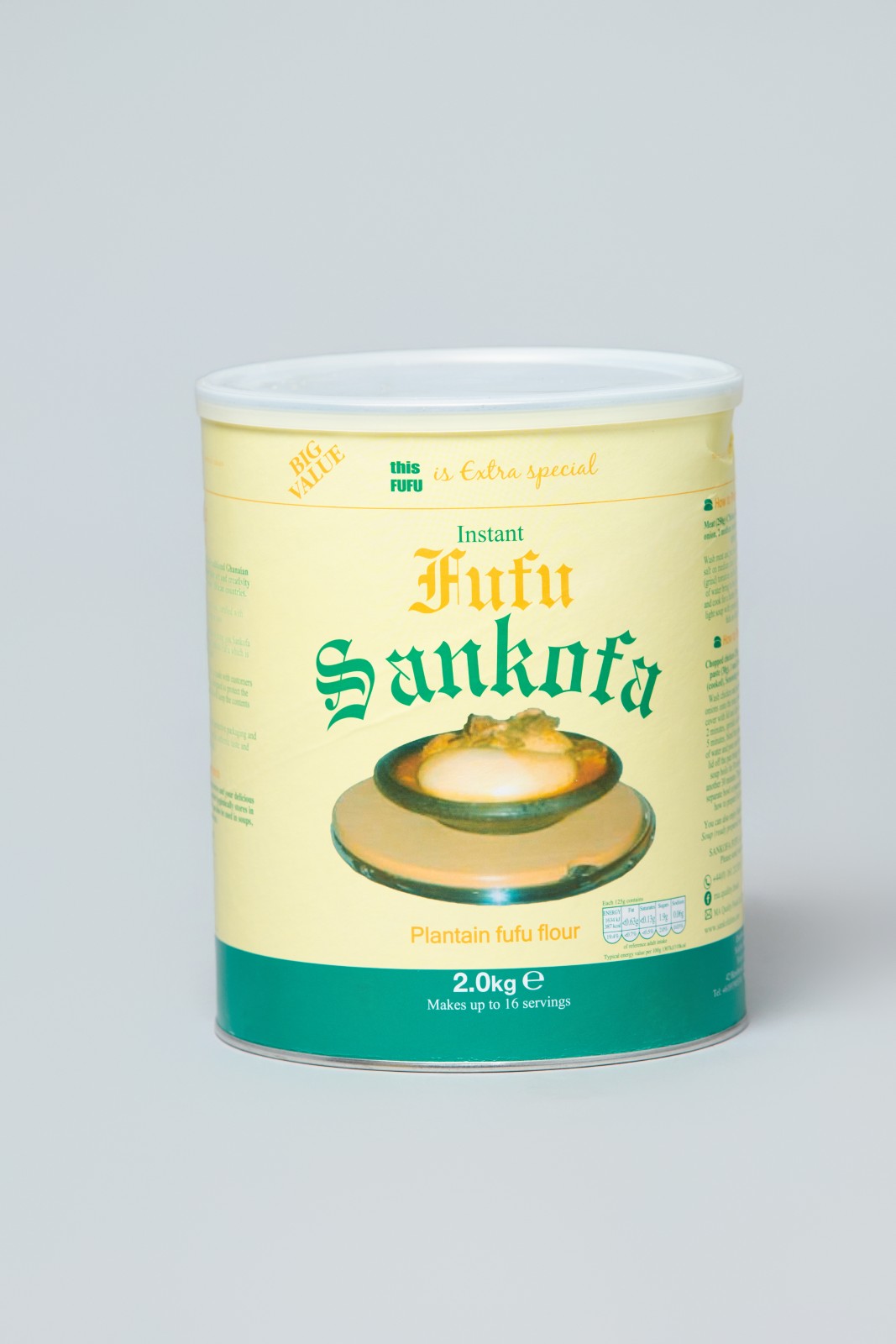 Sankofa Plantain Fufu Flour 2Kg Tin is a quality African grocery product available for convenient cooking and authentic meals.